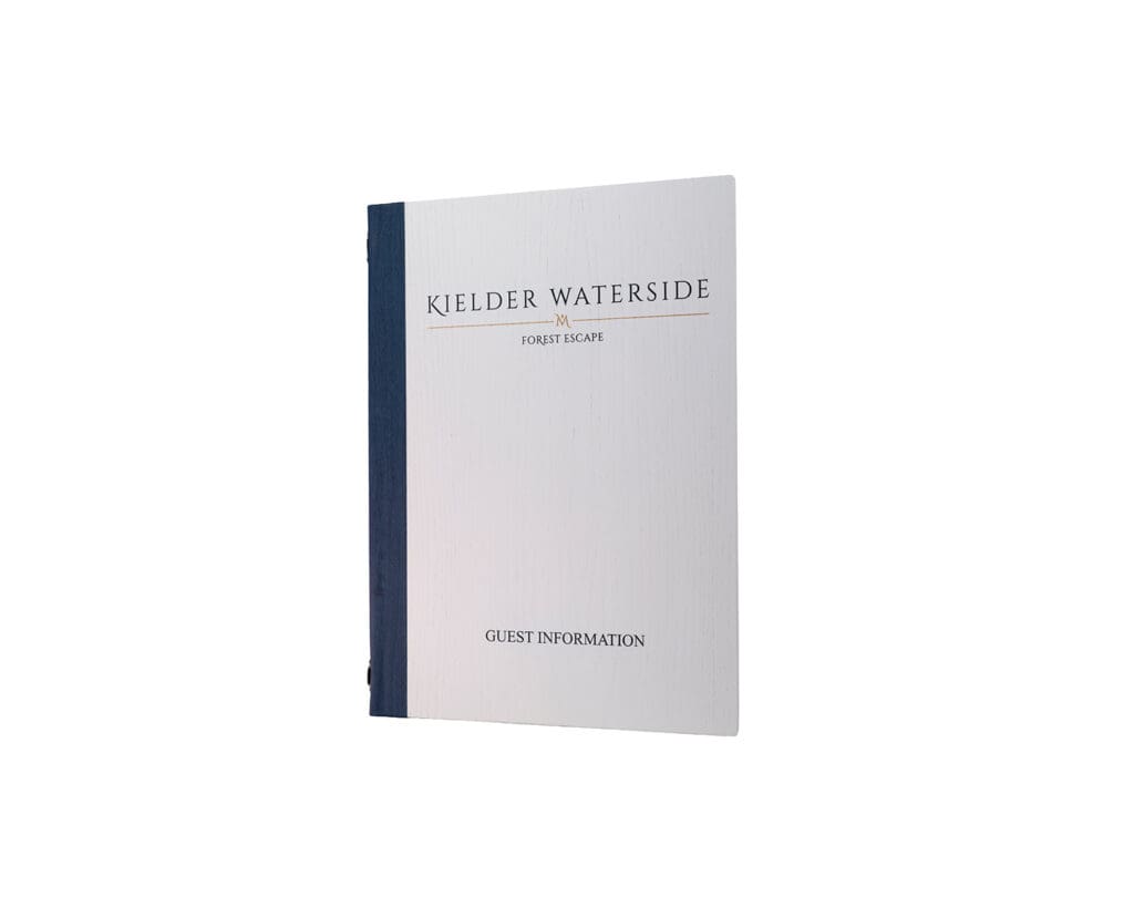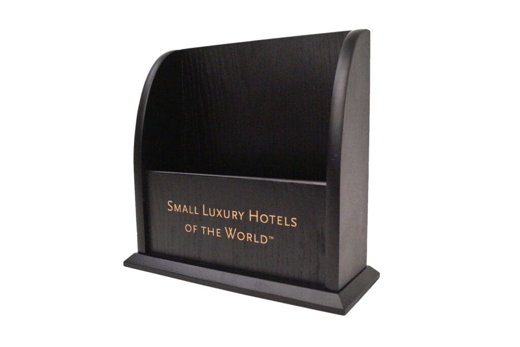 Branded wooden hotel information folder